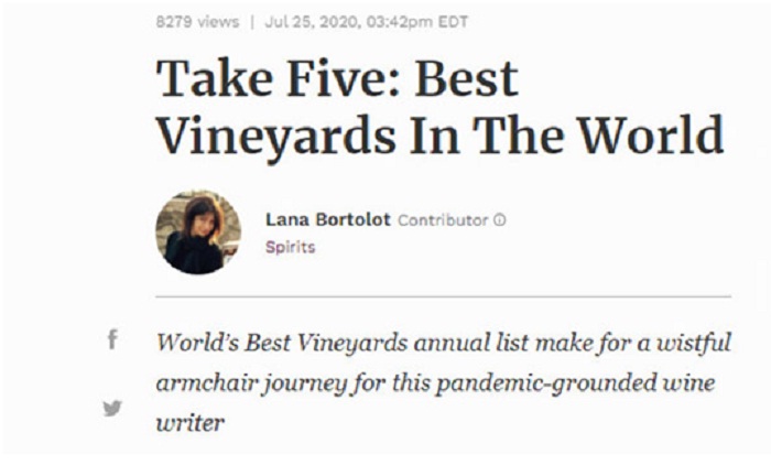 El 25 de julio, Forbes publicó la nota de Lana Bortolot sobre el reciente concurso internacional World's Best Vineyards, ya comentado por Bodegas del Uruguay [ver »], en el cual Bodega Garzón obtuvo por segundo año consecutivo el segundo lugar.