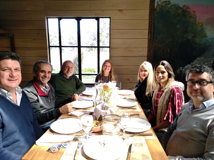 A media mañana arribamos a la Bodega Familia Irurtia, en Carmelo, donde Marcelo Irurtia compartió su pasión por el vino, con un recorrido por la bodega, museo, cava familiar y cava de barricas, mientras relataba la historia de su familia, de emigrantes vascos, que recogieron la primera cosecha en 1913. Hoy cuentan con 100 hectáreas de viñedos, cosechan 1 millón de kilos de uva, crean vinos finos que son exportados a 6 mercados. También desarrollan el Enoturismo, con la opción de un original paseo navegando por el arroyo de las Vacas, desde Carmelo hasta un muelle en los terrenos de la bodega; están plantando especies autóctonas y sumando otras atracciones; y tienen pensado construir habitaciones en antiguos piletones: “apostamos a ser fuertes en turismo a 5 años”, explicó Marcelo.