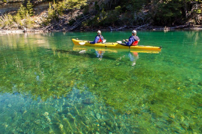 La aventura náutica en kayak o “gomón” pone a prueba la percepción de los sentidos, embebiendo al visitante de la experiencia misma de las aguas cristalinas que se dejan llevar entre arrayanes. Desde adentro, ese universo inalcanzable y perfecto que se observaba desde la ruta, y que en la orilla invitaba a remojar los pies o tentarse con una zambullida; ahora marca el pulso de las emociones con su discurrir vertiginoso e inasible.