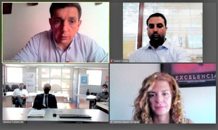 Foto de portada: Fernando Amado, director de la División Turismo de Montevideo y su equipo, en reunión online con directivos de ATM