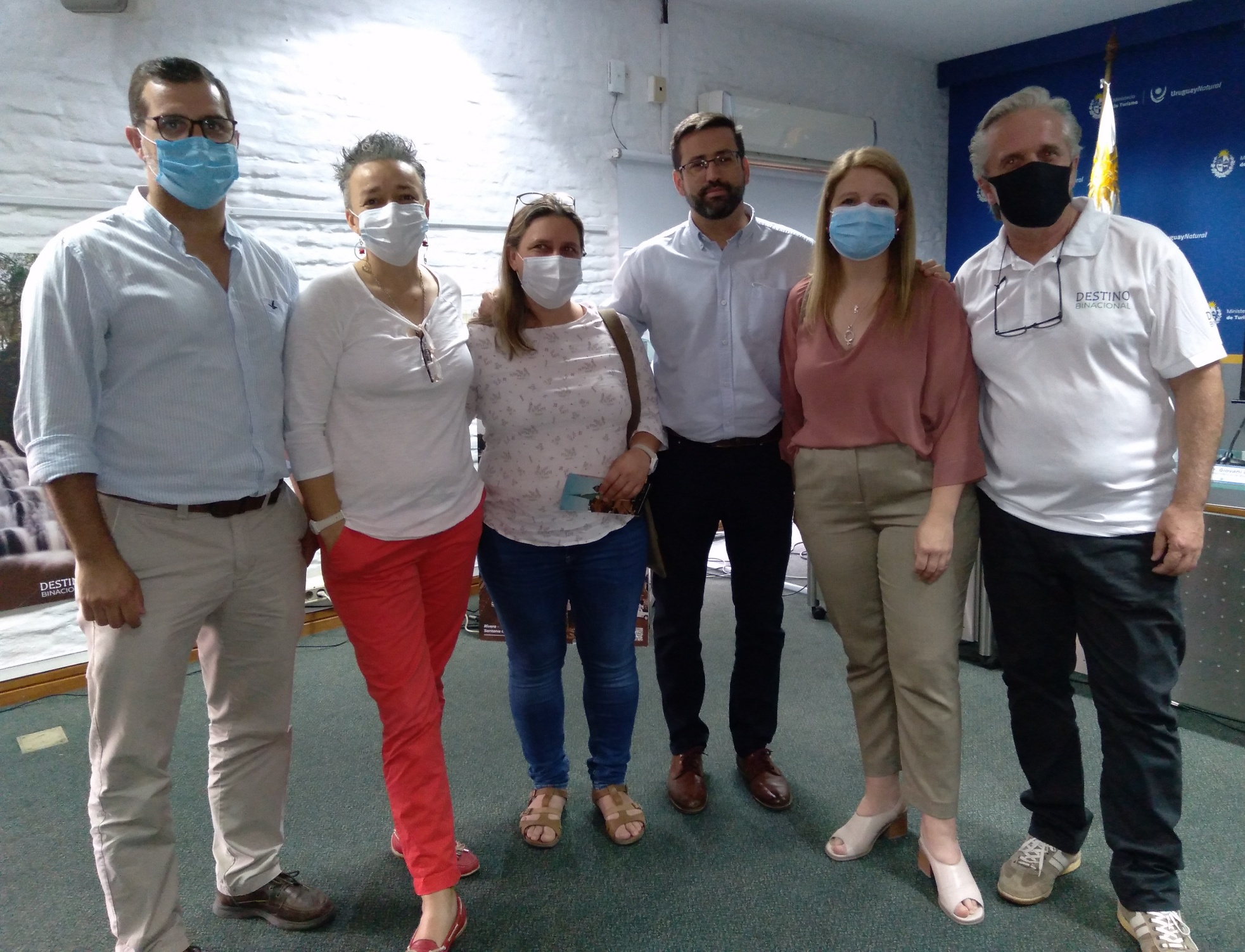 Santiago Esteves, referente del MINTUR en la región Norte; Edelweiss Oliver y Mercedes Viana, operadoras turísticas; Giovani Conti, de la Intendencia de Rivera; , Marina Cantera, Pte. de la CAMTUR; Enrique Puentes, coordinador de Destino Binacional