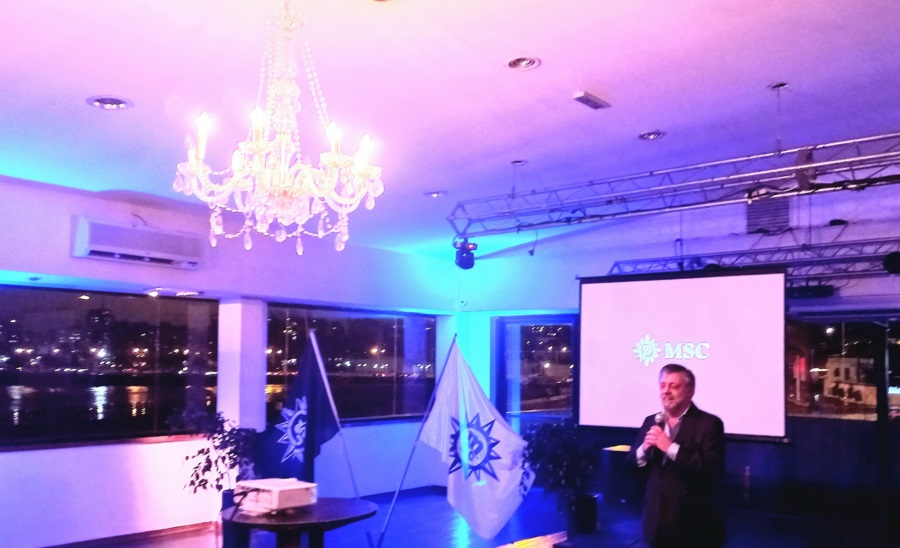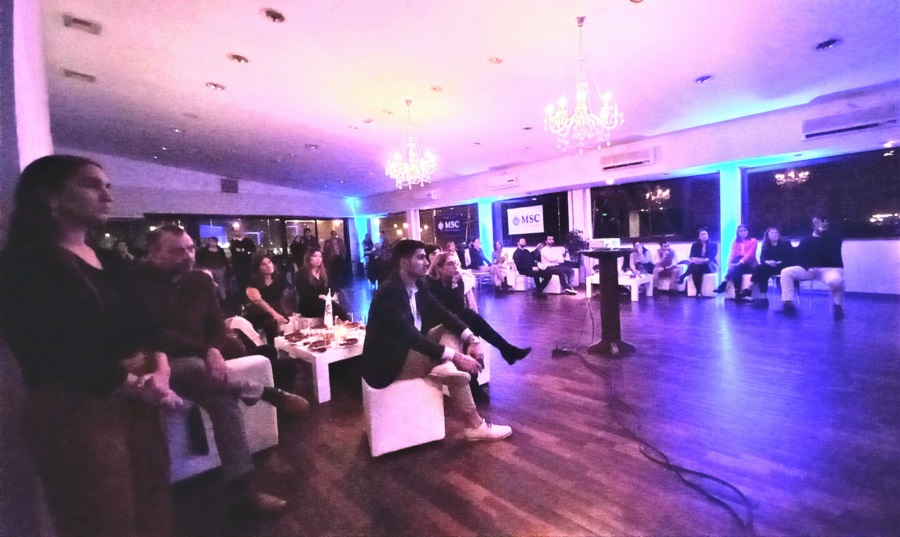 La noche del miércoles 27 de julio era lluviosa y fría. No obstante, la sala de eventos de PYG en la rambla del Parque Rodó, con vista al Río de la Plata, -en consonancia con el lema “El mar siempre”-, fue propicia para que, convocados por MSC Cruceros, hasta allí llegaran agentes de viajes de Uruguay y representantes de medios especializados en turismo.