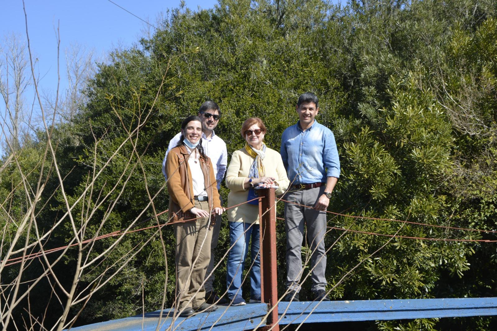 Puente sobre el arroyo Pan de Azúcar en el Parque Zorrilla: Tamara Silvera, de la DT de Maldonado; concejales Leonardo Vigliante y Widmar Montero y María Shaw, Pte. del CIPETUR