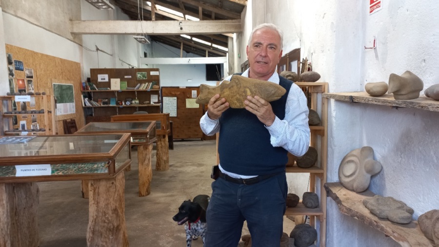 Luis Romero muestra una pieza del Museo Indígena
