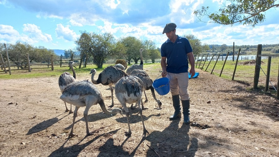 Los ñandúes se acercan a comer