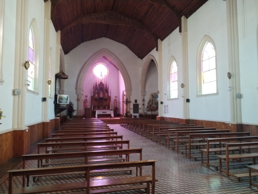 La Iglesia San Francisco Javier llama mi atención por sus dimensiones, teniendo en cuenta la cantidad de habitantes que tenía el pueblo cuando se comenzó a construir en el año 1910. Nos cuentan que la historia está relacionada con Ulasdilao Castellano, oriundo de San Javier, quien fuera además el tercer Arzobispo de Buenos Aires. A pesar de todos sus esfuerzos, falleció en el año 1900 sin poder lograrlo totalmente. Cinco años después llegó de vacaciones a San Javier el presbítero Sebastián Monteverde, por ese entonces párroco de Belgrano. Se encariñó con el pueblo, se enteró de los sueños del Arzobispo y que el mismo estaba enterrado en la cada vez más deteriorada capilla. Decidió entonces ponerse a la cabeza para hacer un nuevo templo-panteón que fuera un digno homenaje a Monseñor Castellano. Las placas que hay en el Templo recuerdan a ambos protagonistas de la historia. La iglesia, renovada en sus espacios en 2022, se erige como protagonista en medio de la plaza principal de San Javier. De colores cálidos por fuera y prolija por dentro, con unos bistrós de diseños combinados.