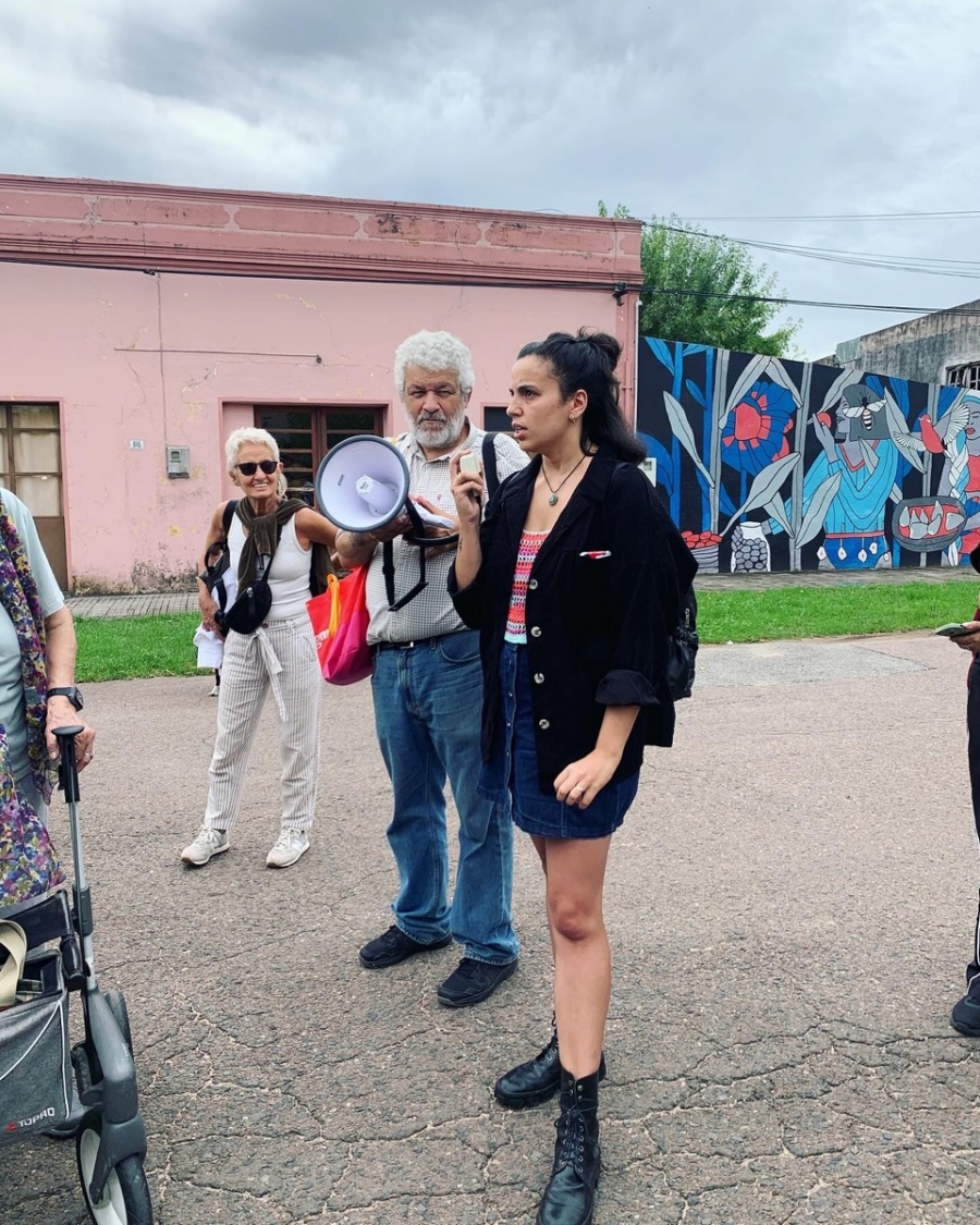 Con más de veinte obras la coordinadora de la visita María Noel Rabuñal Cantero, realiza un paseo a pie, cuya duración es prácticamente “el día” ya que comenzó a las 10 am y con un tiempo para almorzar hasta las 19.