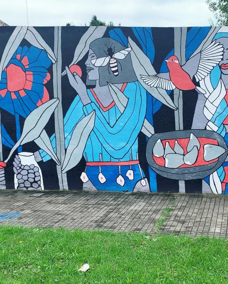Sus imágenes callejeras, fiel expresión de un grupo de mujeres artistas plásticas del lugar, que se expresan en verdaderas obras murales que pintan en paredes en las calles de la ciudad.