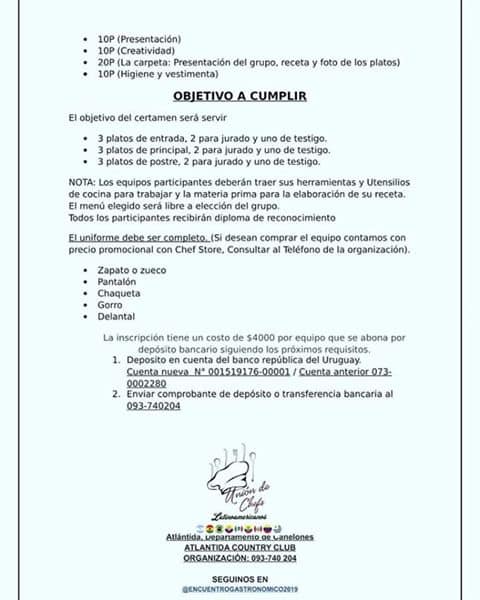 Es organizado por el capítulo uruguayo de la Unión de Chefs Latinoamericanos, junto a LIFA e Índigo; se espera la participación de 20 chefs de Argentina, Chile, Perú, Ecuador, Venezuela, México y Uruguay. La sede será el Country Club de Atlántida, Ruta 11, Km 166. El extenso programa se va a desarrollar desde el miércoles 11 a las 9 de la mañana hasta el sábado 14 de septiembre, cuando se cierre con una cena de gala, entrega de premios, distinciones y reconocimientos.