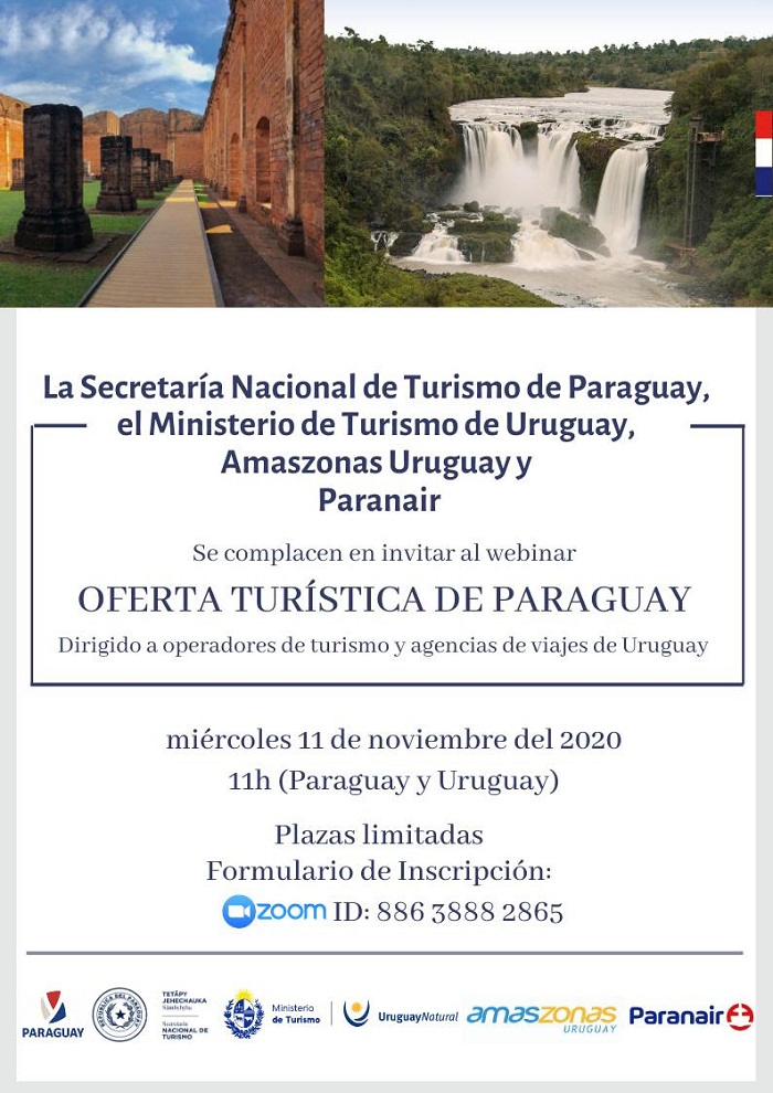 El miércoles 11 de noviembre a las 11.00 hs. la Secretaría Nacional de Turismo de Paraguay, el Ministerio de Turismo de Uruguay. Amaszonas Uruguay y Paranair invitan a la presentación de la oferta turística de Paraguay.