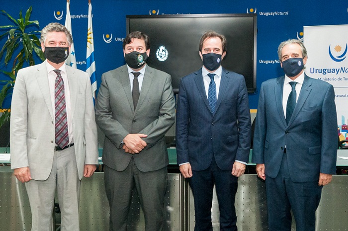 Galería de imágenes: 1.- Subsecretario de Ambiente, Gerardo Amarilla; ministro de Ambiente, Adrián Peña; ministro de Turismo, Germán Cardoso; subsecretario de Turismo, Remo Monzeglio. 2.- Director nacional de Turismo, Martín Pérez Banchero y director general de secretaría del MINTUR, Ignacio Curbelo.