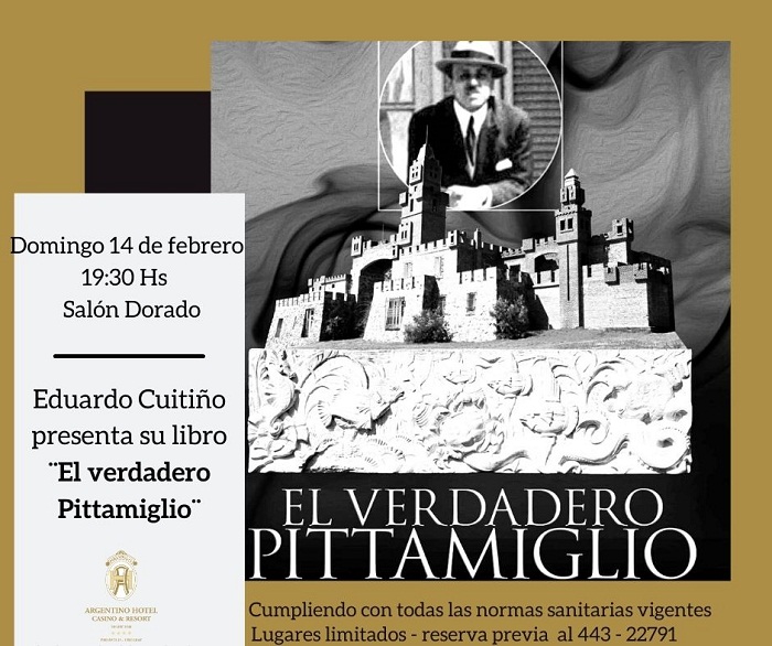 El domingo 14 de febrero a las 19.30 horas en el Salón Dorado, presentación del libro "El verdadero Pittamiglio" de Eduardo Cuitiño. El autor, inquieto investigador, contesta varias interrogantes sobre el enigmático personaje y nos muestra facetas poco conocidas.