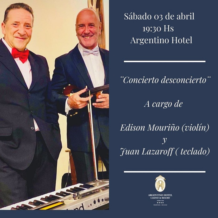 Hora 19 y 30 - Concierto Desconcierto con Edison Mouriño (violín) y Juan Lazarof (teclado) - Una propuesta interactiva donde el público propone el repertorio invitando a un viaje por la música para disfrutar y recordar.