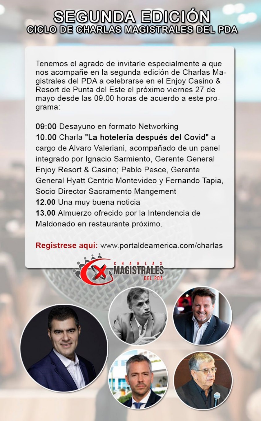 El viernes 27 de mayo, el Enjoy Punta del Este Casino & Resort será sede de esta Charla Magistral, organizada por el Portal de América.
