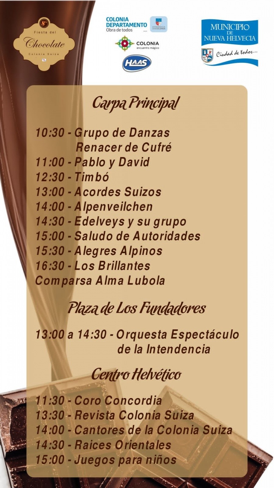 La Fiesta Nacional del Chocolate será el domingo 24 en Nueva Helvecia