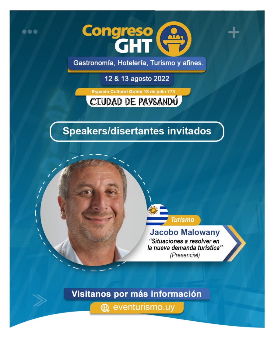 El Congreso GHT es auspiciado por el Círculo de Periodistas de Turismo del Uruguay. El secretario Jacobo Malowany va a representar a la directiva del CIPETUR en este importante evento. Además, el viernes 12, a las 17.00 horas, disertará sobre el tema “Situaciones a resolver en la nueva demanda turística”.