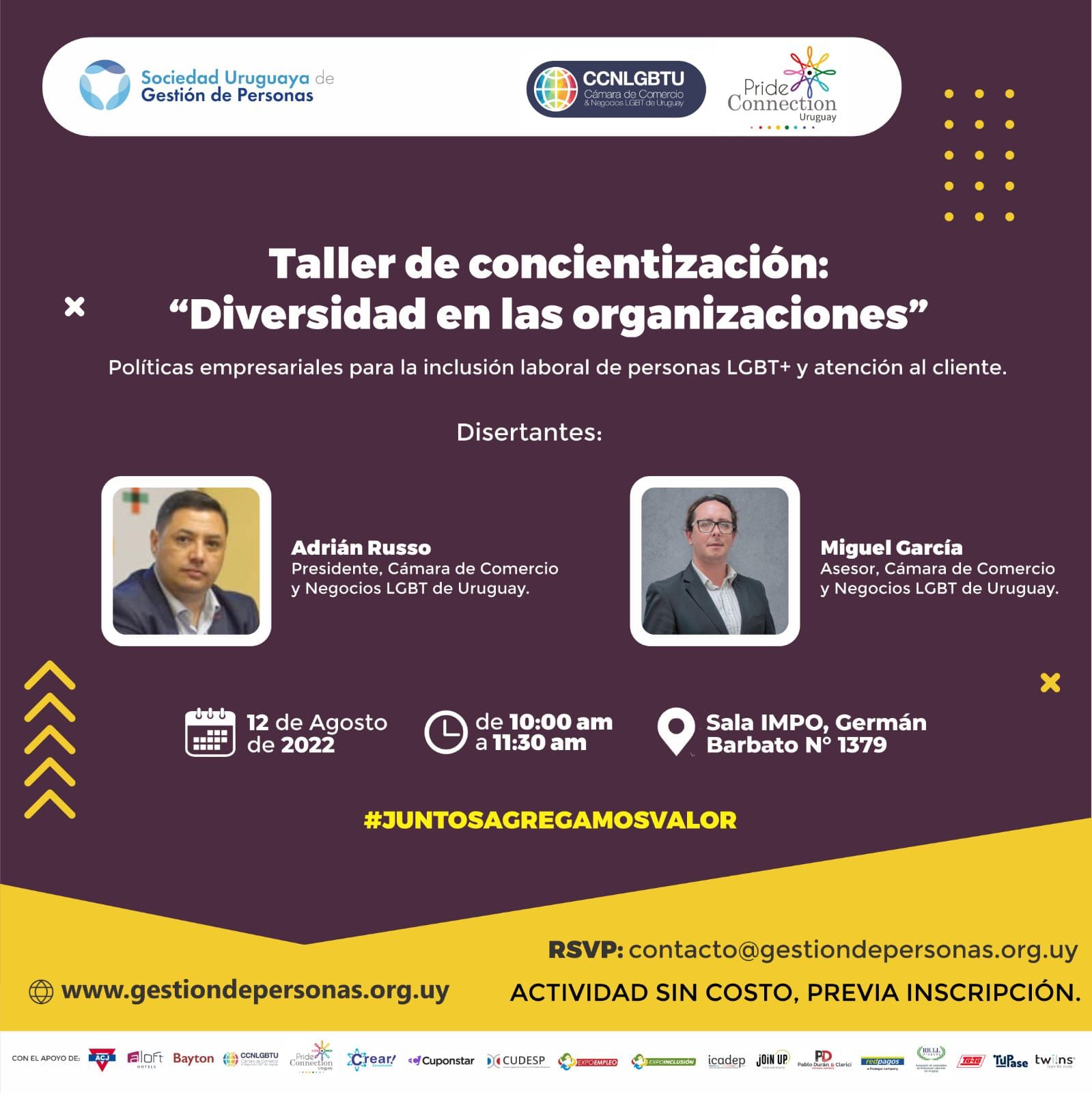 El viernes 12 de agosto, tendrá lugar el taller de concientización: “Diversidad en las organizaciones”, una iniciativa de la Sociedad Uruguaya de Gestión de Personas.