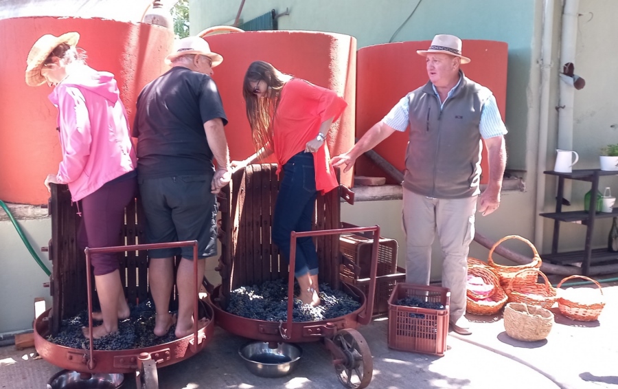 Y los fines de semana, la bodega comenzó a recibir grupos de genta ávida de compartir “¿esa experiencia!” El sábado 18 de febrero, Julio y Mirta fueron anfitriones de un grupo de gente de todo el país -y un chileno- para mostrar lo que ellos describen como “el mejor momento del año, porque podemos mostrarles todas las experiencias y vivencias de nuestra bodega en un solo día”.