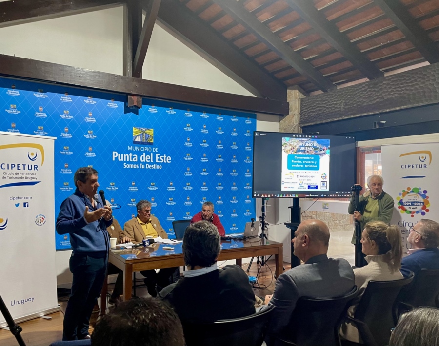El presidente de CIPETUR, Fernando Goldsman dio la bienvenida a los presentes y remarcó “a pesar de la inclemencia del tiempo, la Prensa se reunió a trabajar. Voy a recordar que nuestra institución cumple este año su tercera década. Estamos con ganas de organizar este tipo de actividades porque CIPETUR busca atender las novedades del sector, como son las obras programadas para el puerto de Punta del Este, para los cruceristas y para su propia dinámica. De manera de entablar entre públicos y privados estos temas que nos darán una mejor perspectiva. Estamos realmente muy presentes, esperamos por los oradores y las preguntas de los periodistas.”