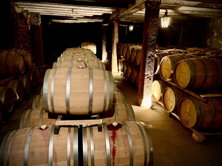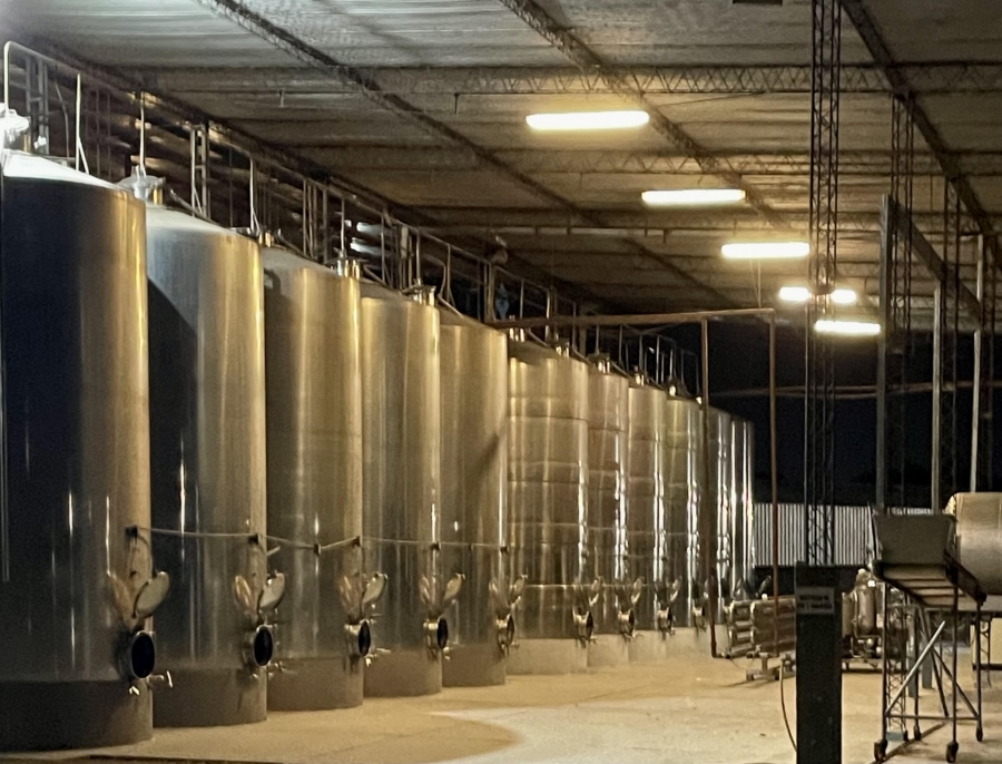 Debajo los tanques de acero esperan por la uva de la próxima vendimia.