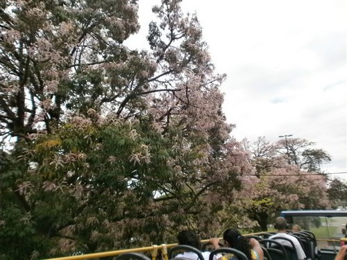 Porto Alegre es una de las ciudades más arboladas de Brasil; el follaje de distintos tonos de verdes, es salpicado de flores amarillas, rosas, fuscias, blancas, que casi acarician a los turistas ubicados en el piso superior del bus.