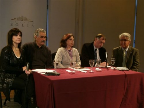 Lic. Daniela Bouret, Directora del Teatro Solís; Miguel Velázquez, Presidente de la Junta de Montevideo; Prof. Ana Olivera, Intendente de Montevideo; Gonzalo Halty, Director de Promoción Cultural de la IM y Álvaro Méndez, Coordinador de la Orquesta Filarmónica de Montevideo