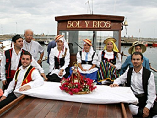Esta tradición que se mantiene tan viva por los descendientes de Canarias se origina en que en esta fecha se realizan grandes fiestas e todo el mundo y especialmente en Islas Canarias donde también es patrona la Virgen de la Candelaria. Cuando Solis descubrió para el mundo europeo el Río de la Plata, fue un 2 de febrero y por ello le puso su nombre a nuestra bahía, y la colocó bajo su protección. Así continúan con su respeto y tradición, por ello no solamente loss niños bailan con trajes tradicionales sino que la misa de homenaje se realiza mitad con la liturgia nuestra y mitad con la canaria, y las ofrendas en ella, además de las tradicionales serán almendras, queso de cabra, gofio, romero, la Santa Rita, que aunque es una planta originaria de Brasil se adaptó en Canarias y la buganvillia y lavanda que en aquellas tierras tiene múltiples usos.