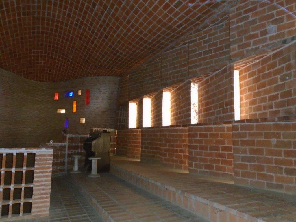 La primera parada fue la Parroquia de Cristo Obrero en la Estación Atlántida, obra emblemática del Ing. Eladio Dieste. La construcción data de 1952 y fue la primera obra arquitectónica del ingeniero, con formas onduladas y armoniosas.