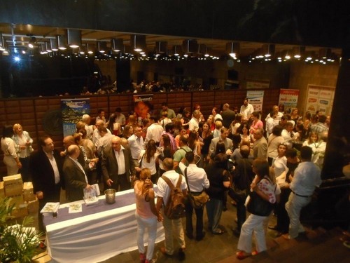 Al llegar a la presentación de Europamundo, los invitados participaron en un cóctel en el foyer del Teatro del Notariado