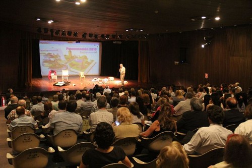 Lleno total en el Teatro del Notariado, todos atentos a la presentación de Luis García Codrón, de Europamundo