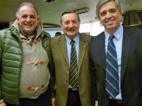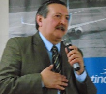 Roque Baudean, Presidente del Fórum Iberoamericano de Periodistas de Turismo y Juan Lescarboura, gerente del Aeropuerto de Laguna del Sauce, junto a Gustavo Carceglia, de Aerolíneas Argentinas