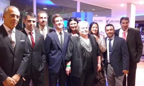 El equipo de Melitour, encabezado por Pedro Díaz, rodea a la Presidente de UAVI, Liliana Etcheverrito