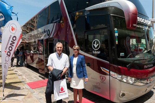 Director Nacional de Turismo Carlos Fagetti frente al Hemocentro Bus en la puerta del MINTUR