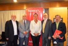 Cr. Juan Martínez Escrich, presidente de la CAMTUR; Ministro de Trasporte Víctor Rossi; Carla Calvete, gerente de Avianca en Uruguay; Lic. Benjamín Liberoff, subsecretario de Turismo; Giorgio Valenti, presidente de AUDAVI