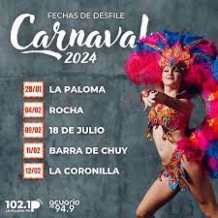 Desfiles en varias localidades: 11/2: Progreso - 18/2: Santa Lucía - 25/2: La Paz - 2/3: Las Piedras - 3/3: Salinas - 9/3: Parque del Plata.