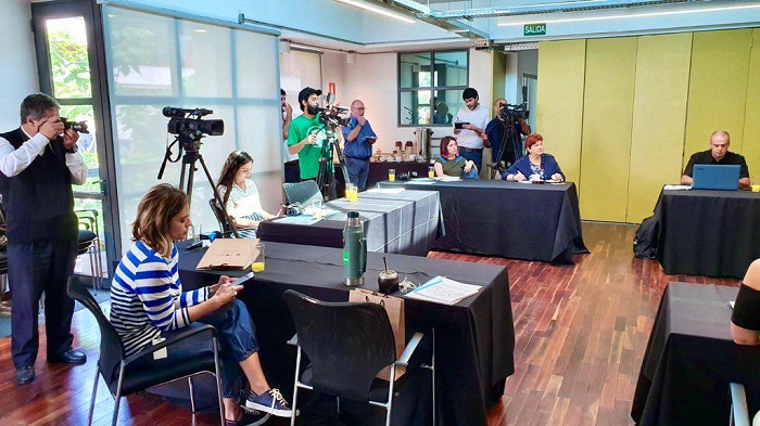 Galería de imágenes: 1.- Elizabeth Villalba, directora de la División Turismo de la Intendencia de Montevideo. 2.- Claudio Quintana, asesor. 3.- Claudio Quintana y Elizabeth Villalba en la presentación. 4.- Periodistas atentos, entre ellos María Shaw del CIPETUR.