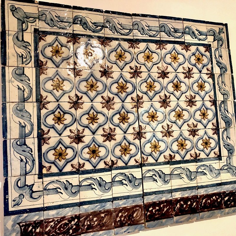 Desde su origen hasta su llegada a Portugal, el azulejo pasó por la intermediación de España, donde predominaba la forma cuadrada. Se dice que fue allí, más precisamente en Sevilla que el monarca D. Manuel I adquirió en 1498, las primeras piezas para decorar el Palacio Nacional de Sintra. (…). Durante unos 70 años Portugal importó azulejos de España. El tema siempre fue geométrico o vegetal (arabescos). Pero el uso creciente de este tipo de revestimiento provocó, alrededor de 1.560, la aparición de los primeros ladrillos portugueses y con ellos, abrió el camino para una producción con sus propias características constituida por diferentes influencias. Las formas geométricas permanecieron, pero gradualmente tuvieron que compartir espacio con composiciones figurativas. Episodios históricos, militares o religiosos.