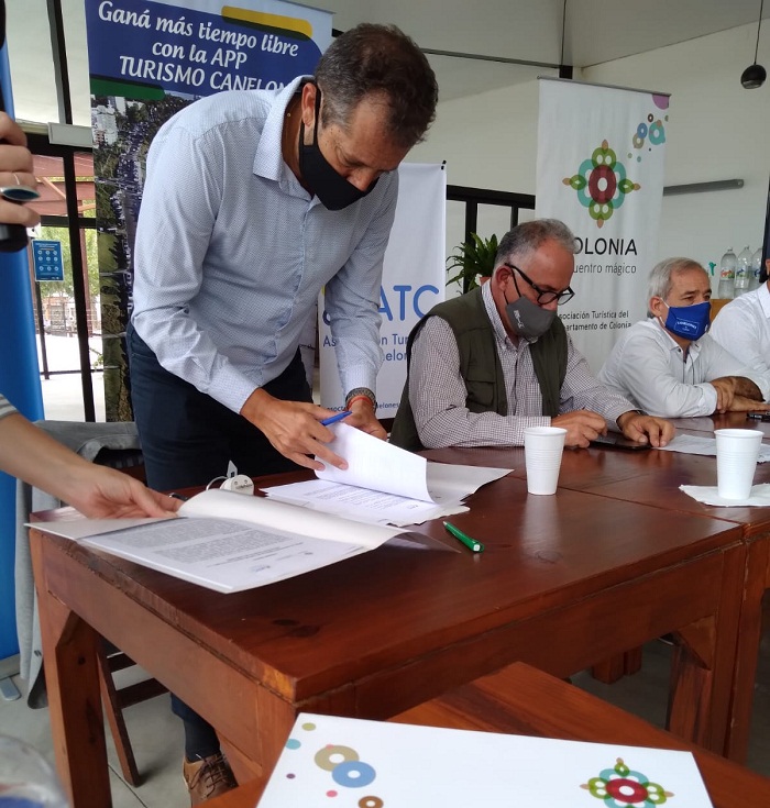 A continuación, se procedió a la firma del importante convenio de colaboración entre las Asociaciones Turísticas de ambos departamentos, con el aval de las direcciones de Turismo de Colonia y Canelones.