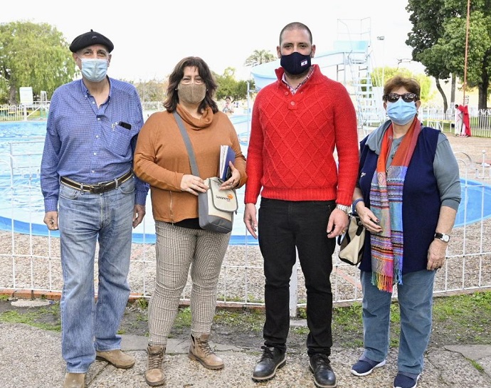 galería de imágenes: Eduardo Segredo, M. Elisa Fernández y María Shaw, del CIPETUR, con José Manuel Galván, director de Turismo de Paysandú, en Termas de Guaviyú. 2.- El grupo de periodistas se movilizó en bus de Turismar.
