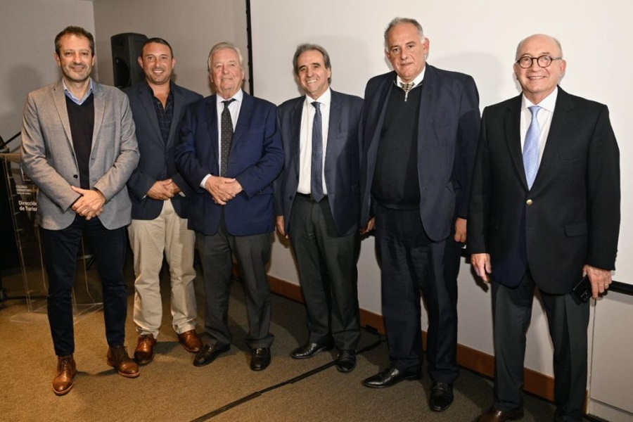 Intendente Carlos Moreira; Marina Cantera, Pte. de la CAMTUR; Roque Baudean, DNT; Andrés Castellano, Pte. de la ATDC; María Shaw, Pte. del CIPETUR; subsecretario de Turismo Remo Monzeglio; Fernando Tapia, vicepresidente de la ATDC; Paula Álves, asesora técnica de la DT de Colonia