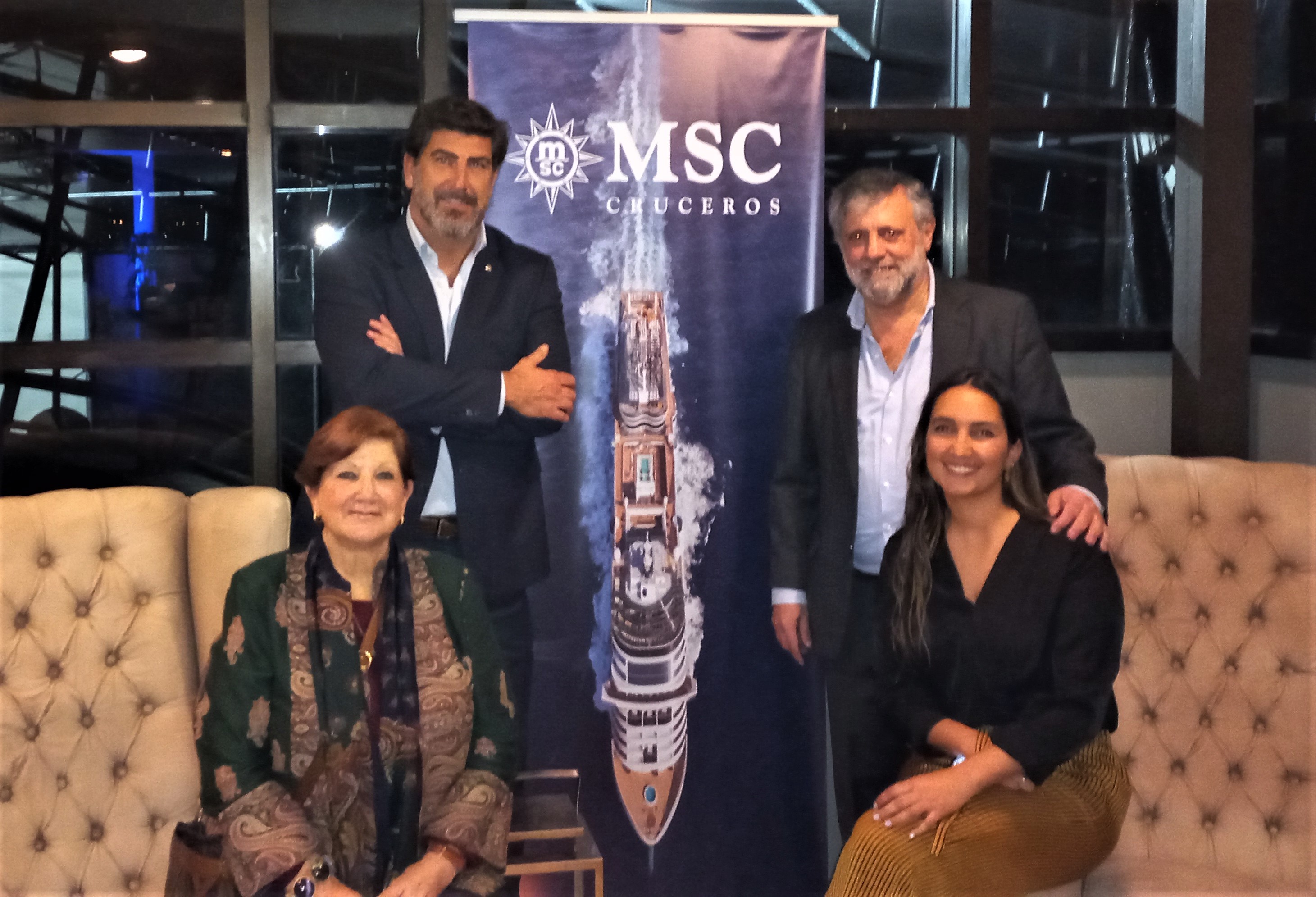 Javier Massignani, director de MSC Cruceros Argentina y LATAM; Pablo Laudonia, gerente comercial; Karin Ruting, ejecutiva para Uruguay; María Shaw, Pte. del CIPETUR