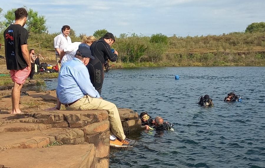 El sábado 22 por la tarde, partimos hacia las Canteras el Terrible para sumarnos (o más bien dos valientes colegas se animaron) a la propuesta de actividades al aire libre. La tarde estaba soleada pero muy ventosa y algo fresca. Eso no fue impedimento para que Eduardo Batista y Violeta Carresse se sumergieran a bucear en las aguas de una laguna que se formó en una vieja cantera. Los organizadores de esta movida, Patricia Lucas y Matías Borba, de Buceo Prodive, que reciben buceadores los fines de semana, acompañaron a quienes se animaron a la experiencia.