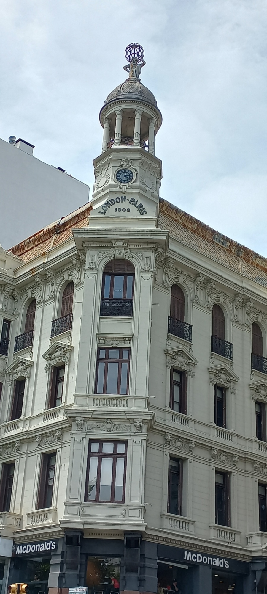 Nacido como edificio de la compañía de seguros “Standard Life”, construido entre 1905 y 1908, desde 1914, el “London París” fue referente en la esquina que se convirtió en la más popular de Montevideo: 18 y Río Negro. Allí funcionó hasta 1963, una de las grandes tiendas capitalinas y también conocida por sus muy famosos catálogos. En lo alto, se destaca su cúpula con un reloj y columnas, rematada con un Atlas sosteniendo al mundo.