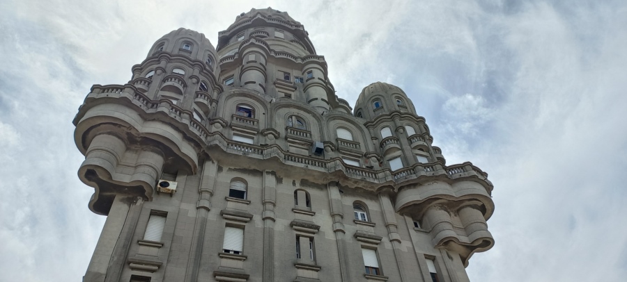 Al arribar a la plaza Independencia, las miradas van hacia el Palacio Salvo, uno de las postales montevideanas. Fue encargado por los hermanos Salvo al famoso arquitecto Mario Palanti y desde 1928 es un ícono del clasicismo. Fue hotel, luego vivienda y cuenta con comercios y una galería comercial. Sobre su amplia base sobre la plaza, la avenida y la calle Andes, se asienta una gran torre que finaliza en cuatro cúpulas. Fue declarado monumento histórico nacional en 1996. Desde su terraza en el piso 10, impacta la torre y sus 4 cúpulas que luego de trepar unos pisos más, es coronada por otra cúpula mayor.