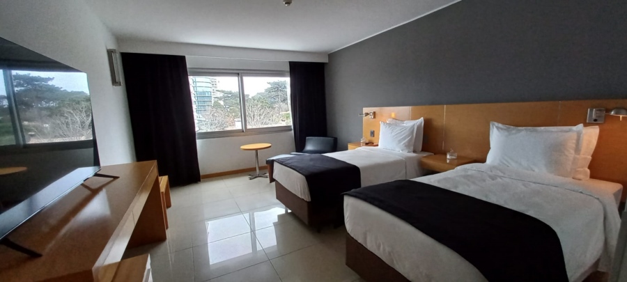 Por otro lado, una sala con capacidad para 50 personas en estilo auditorio, con equipamiento técnico de vanguardia, resulta óptima para reuniones de trabajo y presentaciones empresariales de distinto tipo. Su acceso directo desde el lobby, WiFi en cortesía en todo el hotel, recepción 24 horas, garaje cubierto, servicio de traslado a los aeropuertos Laguna del Sauce y Carrasco y su corta cercanía al centro de convenciones de la ciudad, completan su oferta.