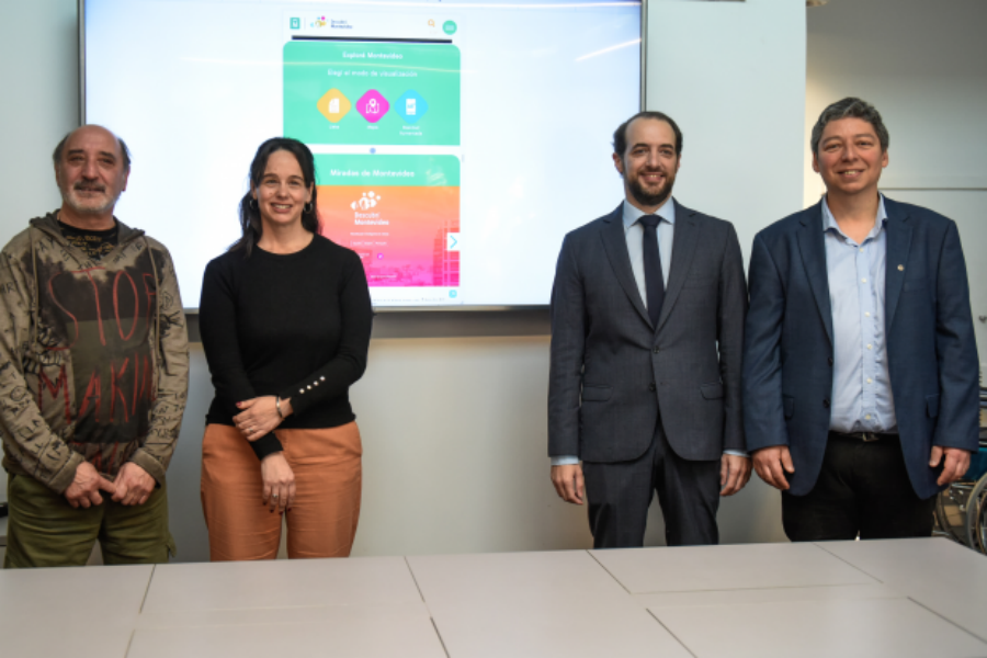 José Garín, creador de la app; Karina Fortete, asesora de la División Turismo; Fernando Amado, director de Turismo de Montevideo; Gustavo Cabrera, director del Departamento de Desarrollo Económico de la Int. de Montevideo