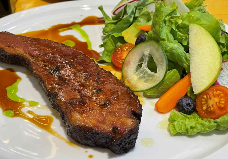 Asado de tira, lomo de res, cordero y salmón patagónico asados a la parrilla