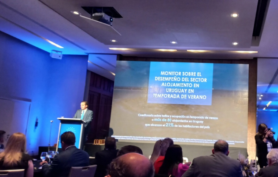Ignacio Munyo, director ejecutivo de CERES, el Centro de Estudios de la Realidad Económica y Social, presentó el informe “Monitor Actividad Turística. El turismo como motor de desarrollo económico y social del Uruguay”. Manejó muchas cifras y dio a conocer que junto con la CAMTUR, se realizó una encuesta a más de 80 alojamientos, sobre tarifas y ocupación en el verano. Entre varios datos de interés, destacó la participación del turismo en el PBI de Uruguay. La proyección estimada por CERES para el 2023 va a ser del 5.9%, apenas medio punto por debajo del PBI del 2019.