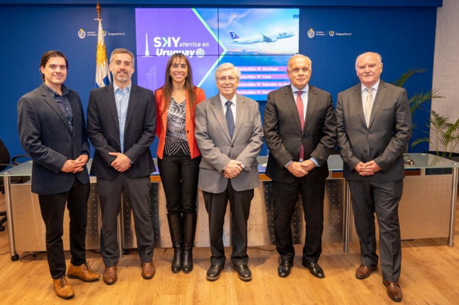 Por su parte, el ministro de Turismo, Tabaré Viera, indicó: “le damos la bienvenida a SKY en su regreso a Uruguay, con vuelos que nos conectarán con Santiago, Lima, Salvador y Florianópolis. Sin duda es un gran aporte a la conectividad aérea con la región y el mundo, fundamental para el desarrollo del turismo y del país. SKY aportará seguramente calidad en los viajes de los turistas que nos visiten”.