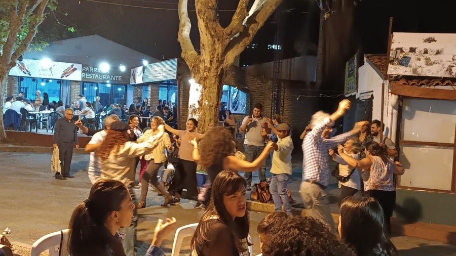 Mauro y su grupo cultural de "Ronda folklórica" entusiasmó tanto al público presente que las personas coparon la calle, y se pusieron a bailar al compás de los acordes musicales.